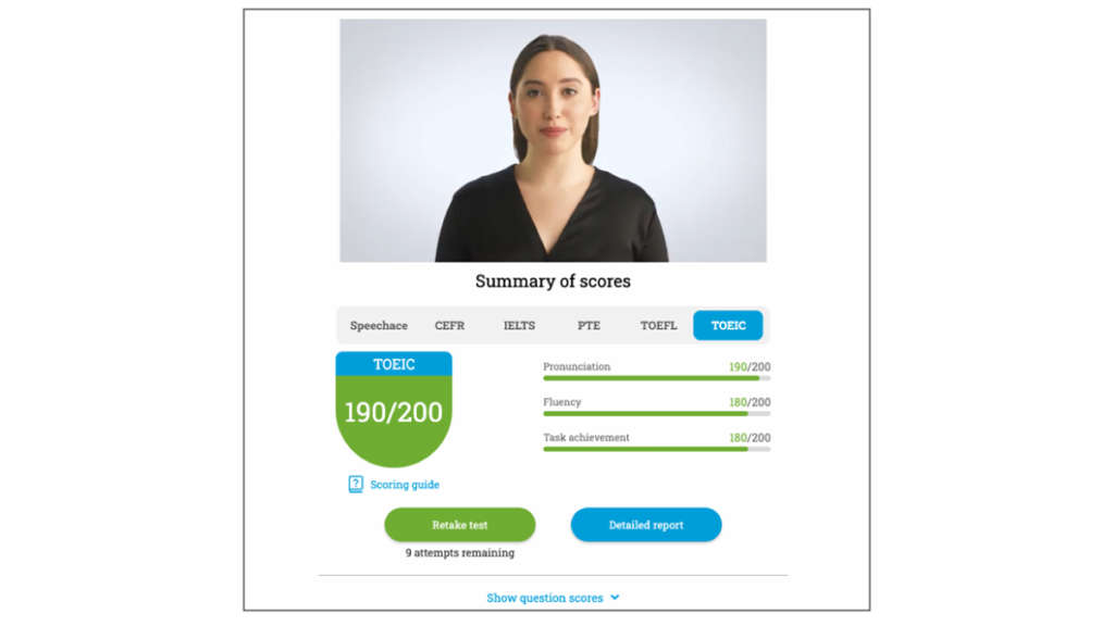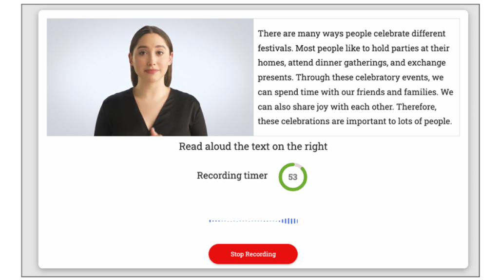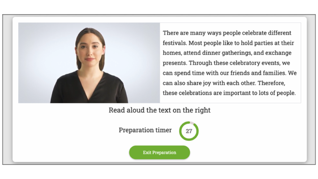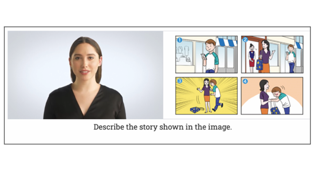 このテストでは、英語のスピーキング能⼒と、テスト機関が定めたタスクが達成されているかが測定されます。