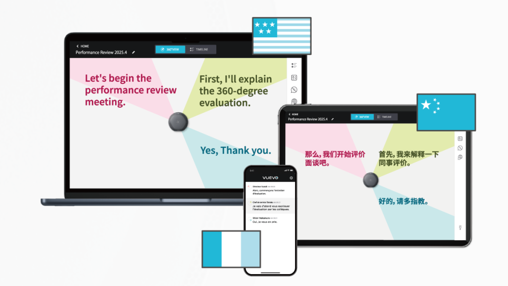 聴覚障がい者が参加する会議や会話シーンでもVUEVOなら誰が何を話してしるか一目で分かり、コミュニケーションがスムーズになります。