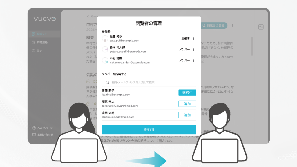 閲覧者を追加することで、オンラインで会話メモを共有することができます。